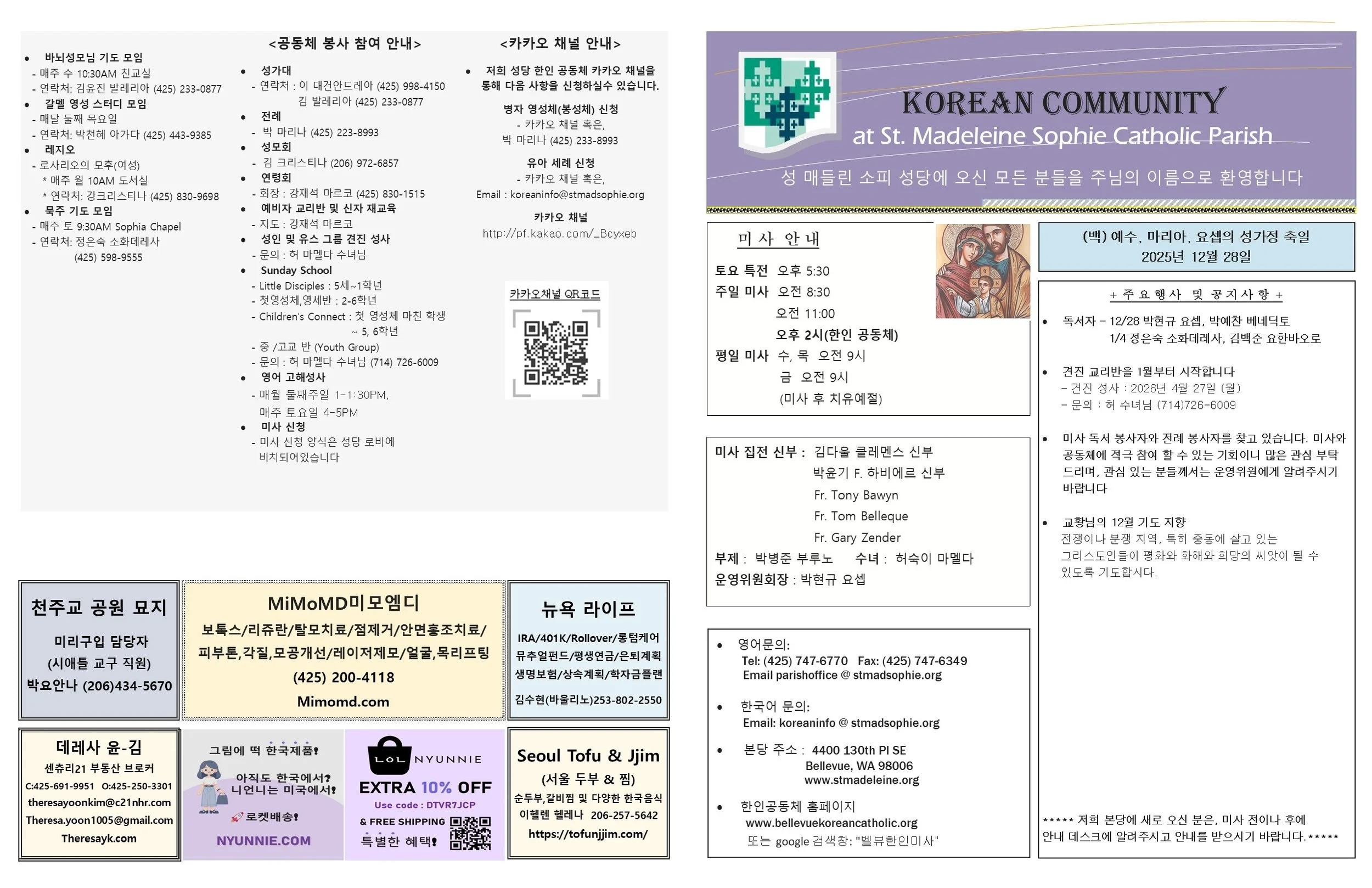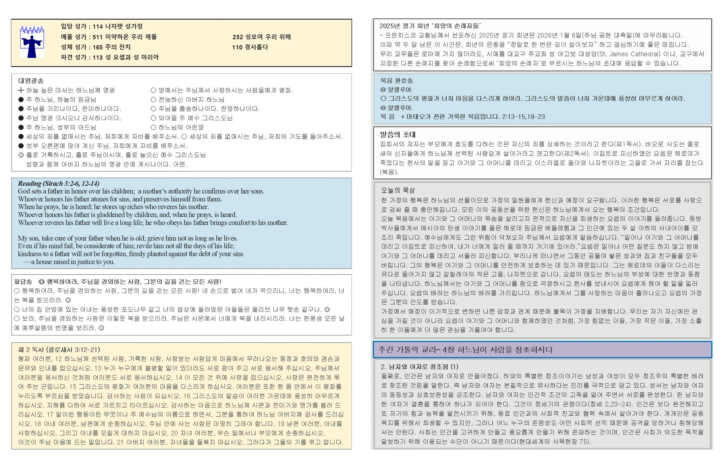 (백) 예수, 마리아, 요셉의 성가정 축일 2025년 12월28일